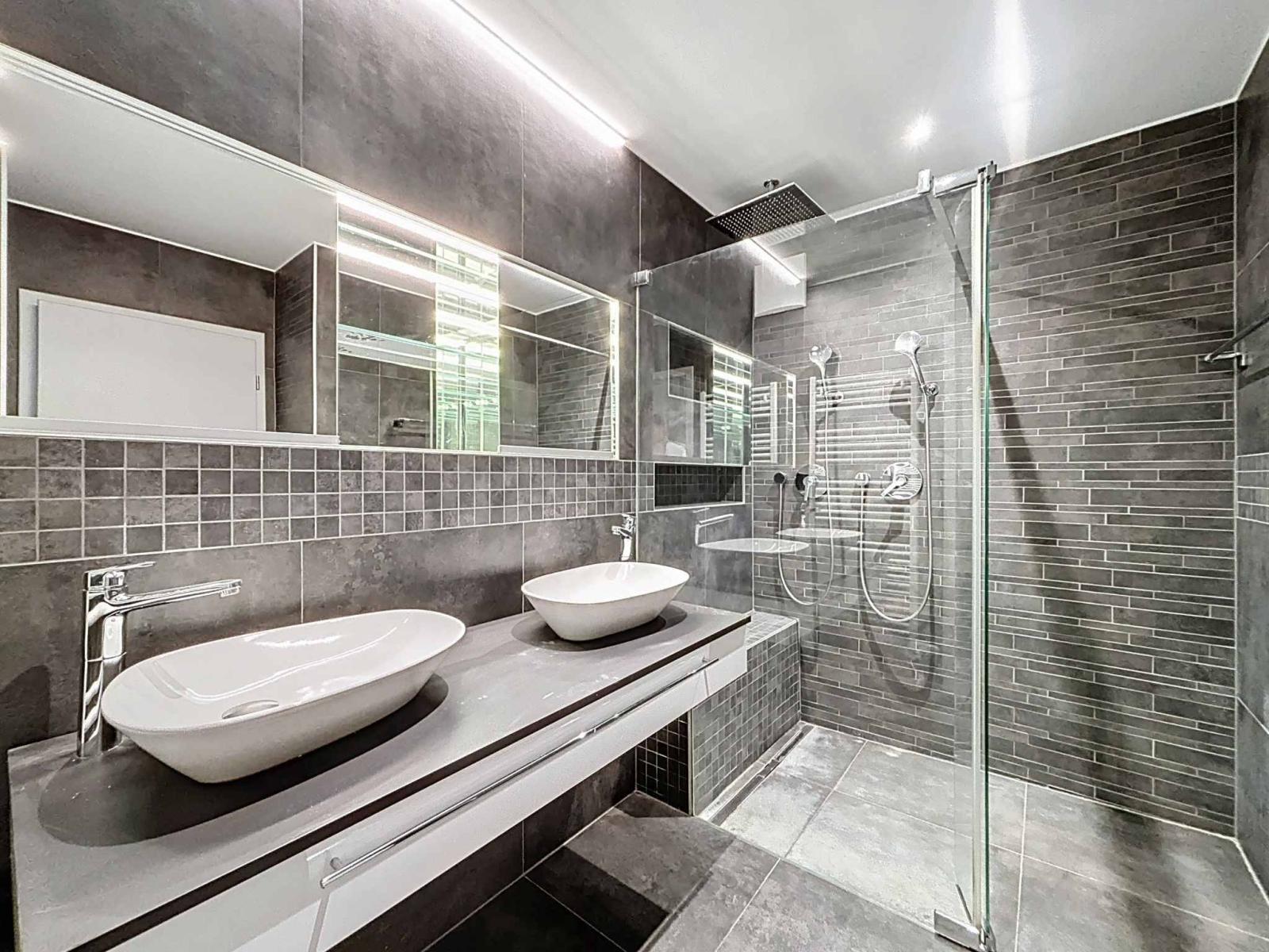 Al piano superiore, la zona notte offre privacy e comfort assoluto. Due luminose camere da letto condividono un bagno con WC, mentre la suite padronale vanta una cabina armadio e un bagno privato con doccia, creando un ambiente davvero privato all'interno dell'appartamento. Un open space completa armoniosamente questo piano, ideale per creare un elegante ufficio, un angolo lettura o uno spazio relax, a seconda dei vostri desideri e del vostro stile di vita.