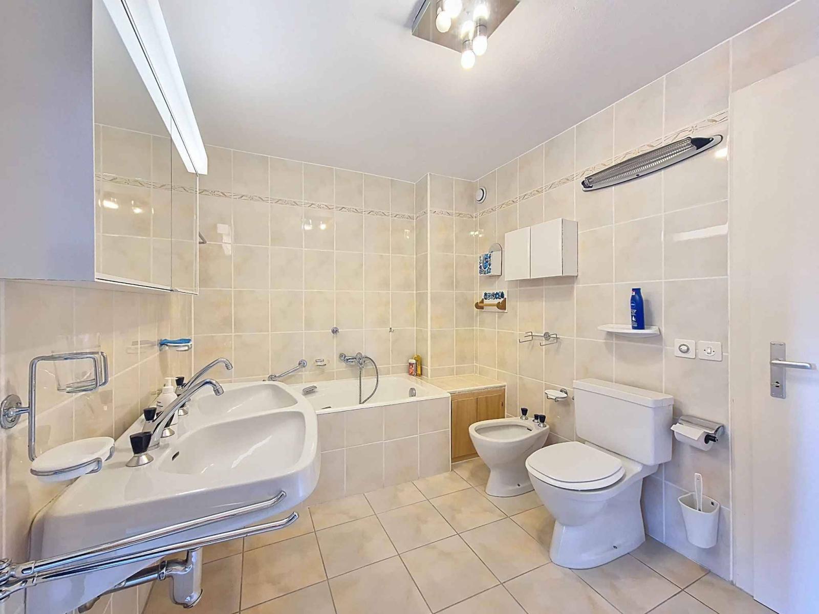 Al piano terra si trova un monolocale indipendente che può essere utilizzato autonomamente o affittato. L'intera proprietà viene venduta con un posto auto coperto, due cantine e due armadietti per gli sci.