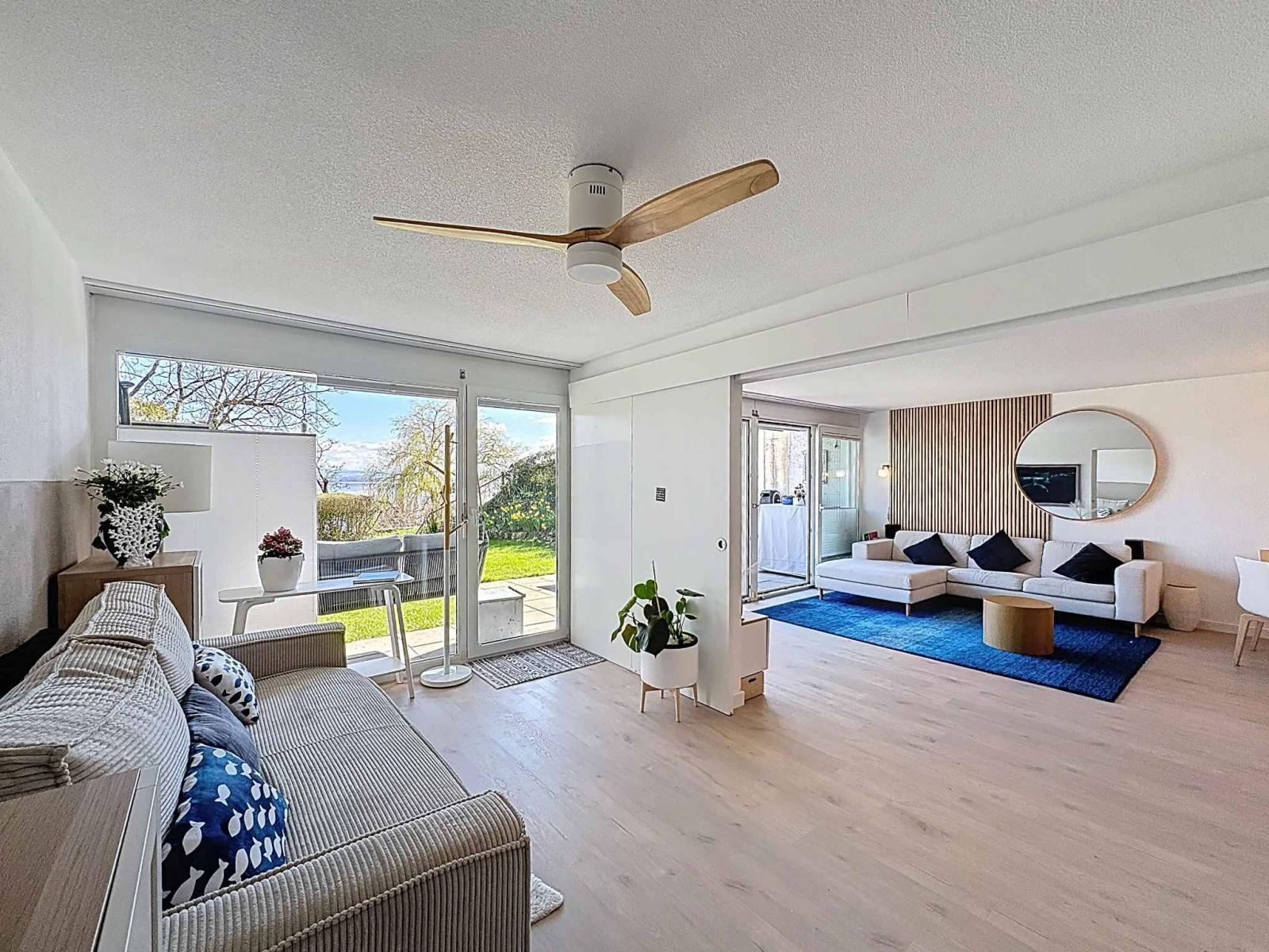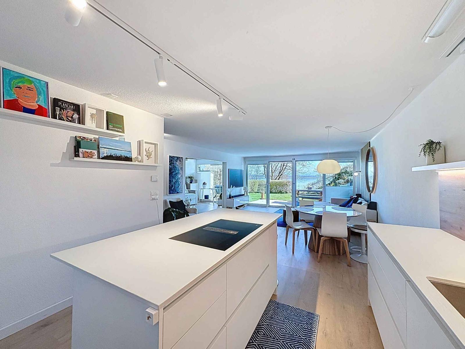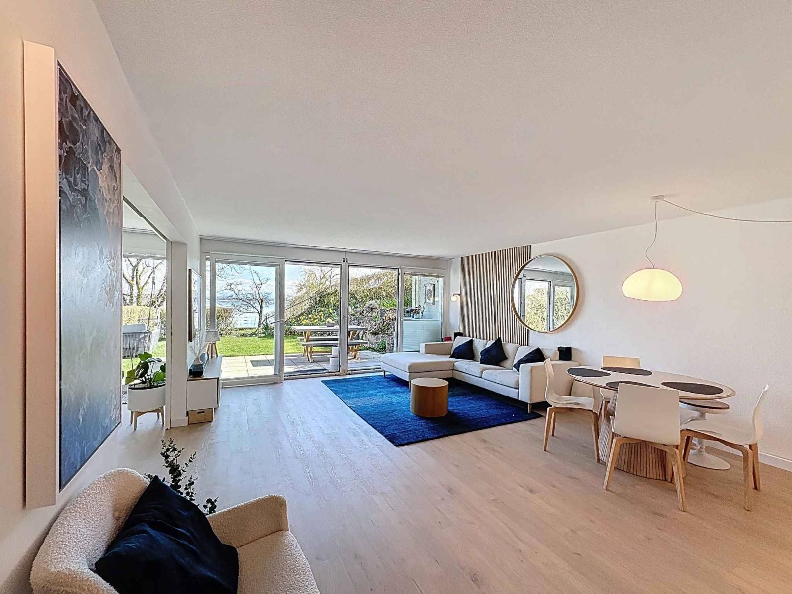Situato all'interno di una residenza di lusso perfettamente mantenuta, costruita nel 2003, questo magnifico duplex di 4,5 locali, per un totale di 154 m² di superficie abitabile, gode di una posizione fronte lago davvero eccezionale. Adagiato al piano giardino, offre un accesso diretto e privilegiato al lago, un privilegio ormai estremamente raro sul mercato.
