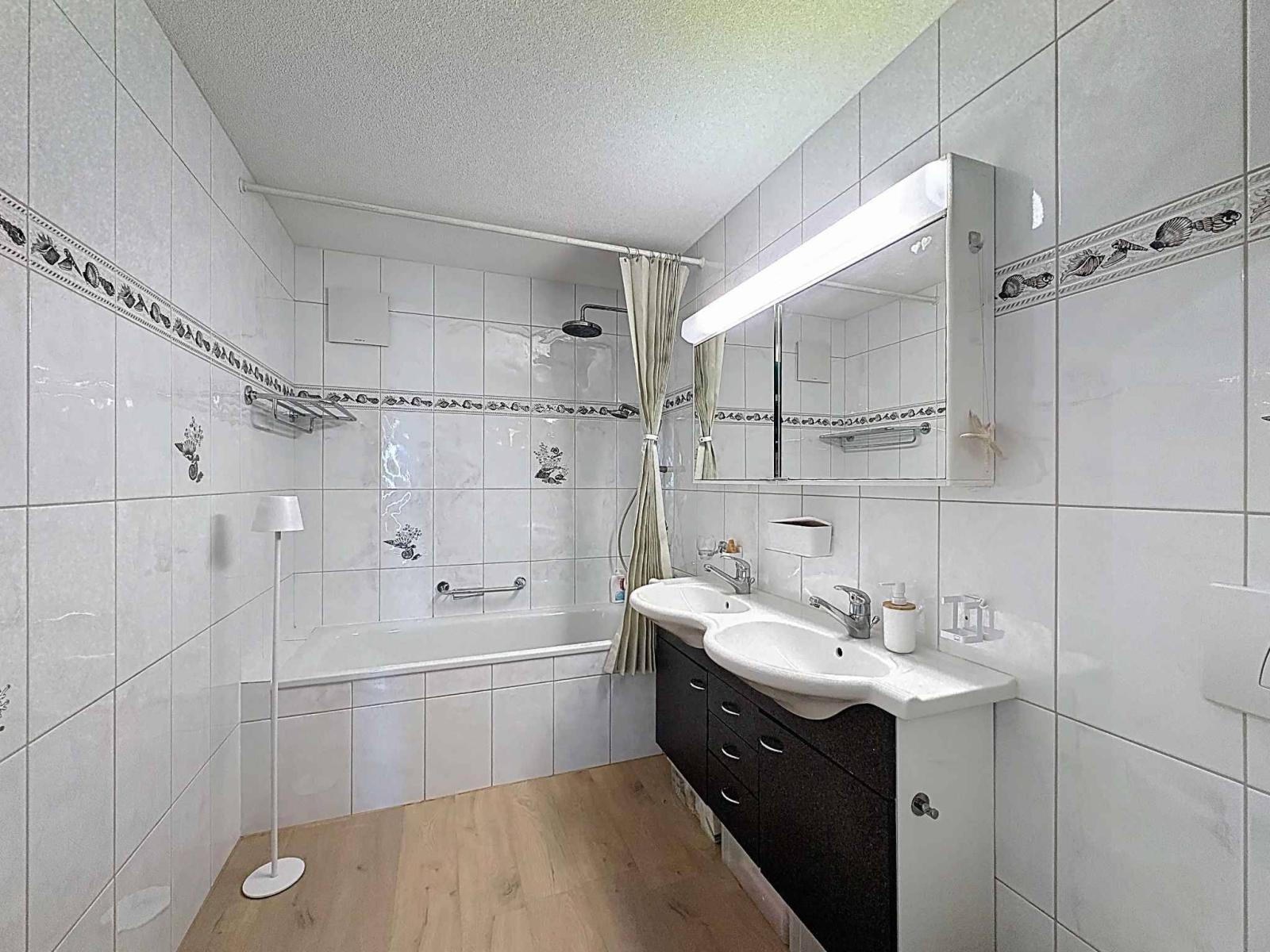 Al piano superiore, la zona notte comprende due comode camere da letto, una delle quali può essere facilmente separata all'occorrenza. Offrono una vista mozzafiato sul lago e accesso diretto al balcone, creando un ambiente di vita tranquillo e stimolante. Un bagno e un ripostiglio completano questo piano.