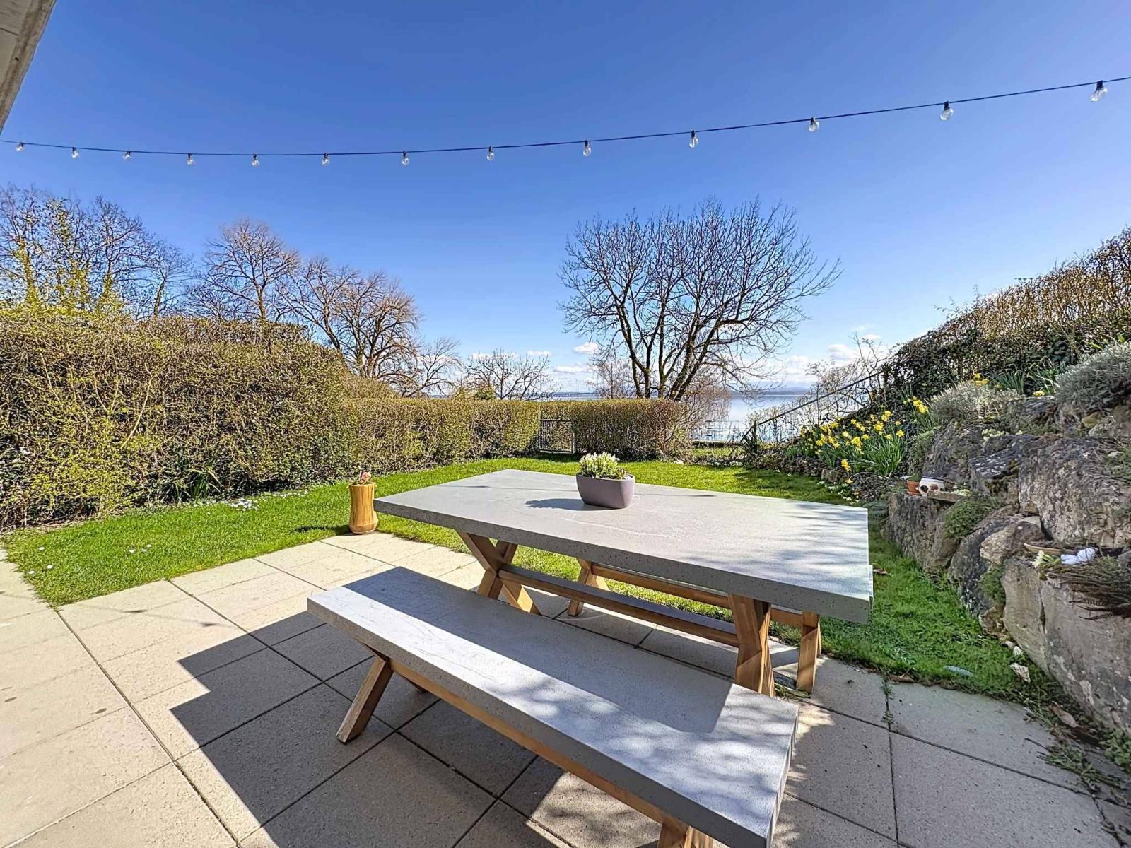 Il giardino privato con accesso diretto all'acqua è senza dubbio uno dei punti di forza di questa proprietà. Tra nuotate mattutine, uscite in paddleboard e momenti di relax con vista sul lago, la vita quotidiana qui assume un'atmosfera vacanziera. La presenza di una boa di ormeggio e l'accesso al molo privato accrescono ulteriormente l'esclusività di questa proprietà, particolarmente apprezzata dagli amanti della nautica e della natura.