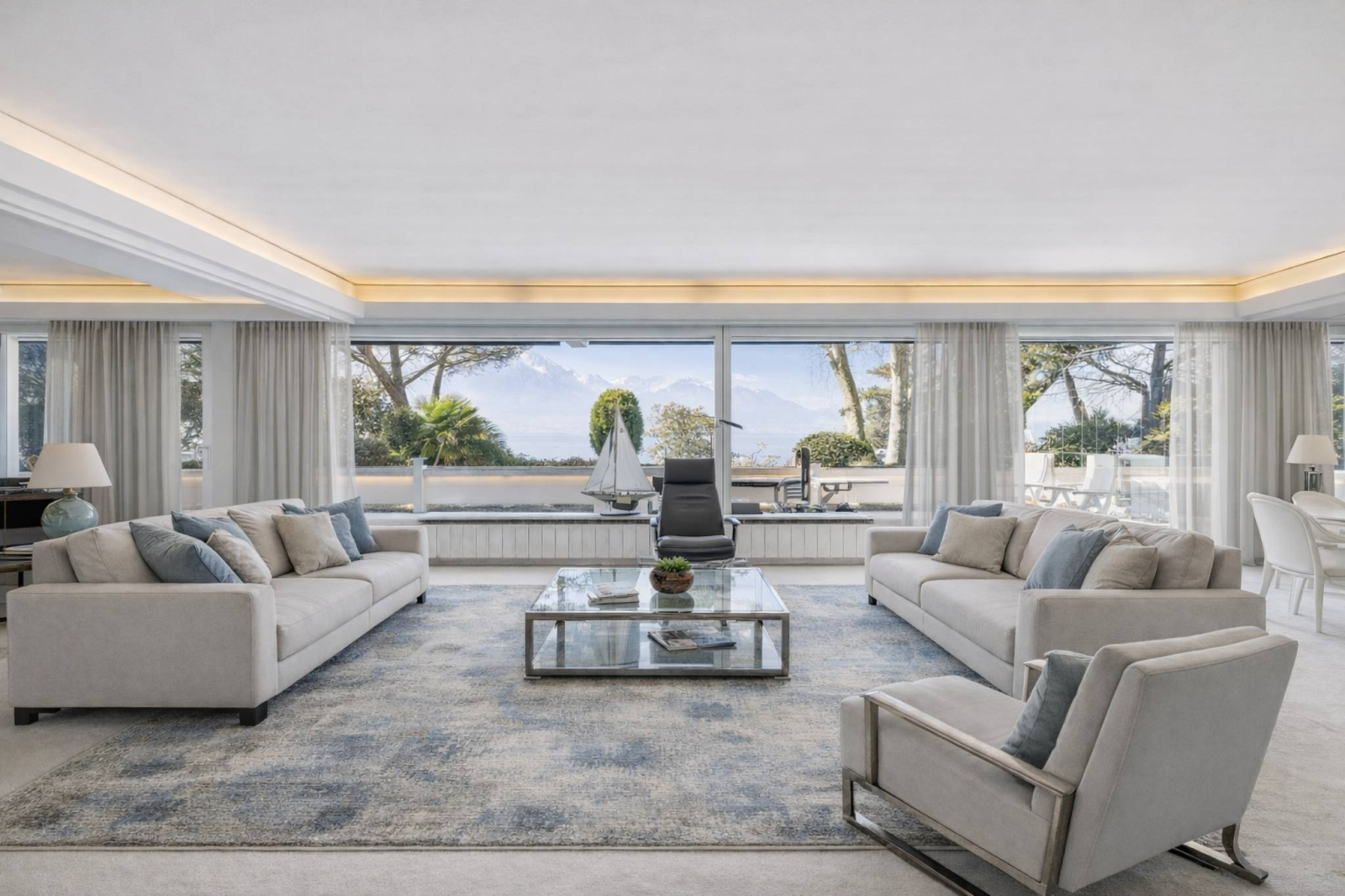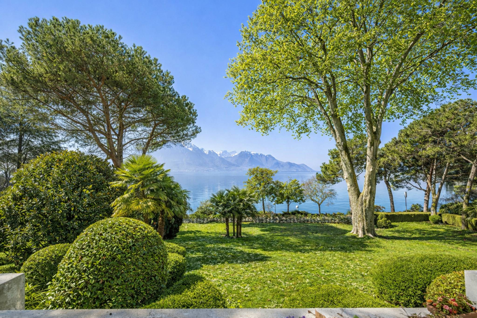 Situato al primo piano, l'appartamento vanta un'ampia facciata che si apre sul lago e una terrazza di circa 63 m² che si estende per tutta la sua lunghezza, offrendo una vista panoramica e senza ostacoli sul Lago di Ginevra e sulle montagne circostanti.