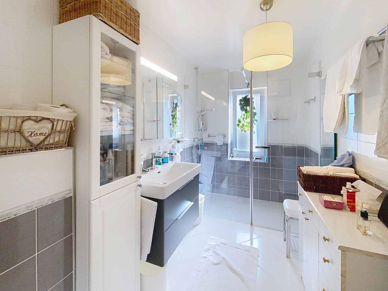 La zona notte comprende due camere da letto spaziose e silenziose e un bagno moderno con cabina doccia. Un ulteriore locale, attualmente adibito a bagno di servizio con lavanderia, è dotato degli allacciamenti idraulici necessari per l'installazione di una doccia, facilitando così la creazione di un secondo bagno.