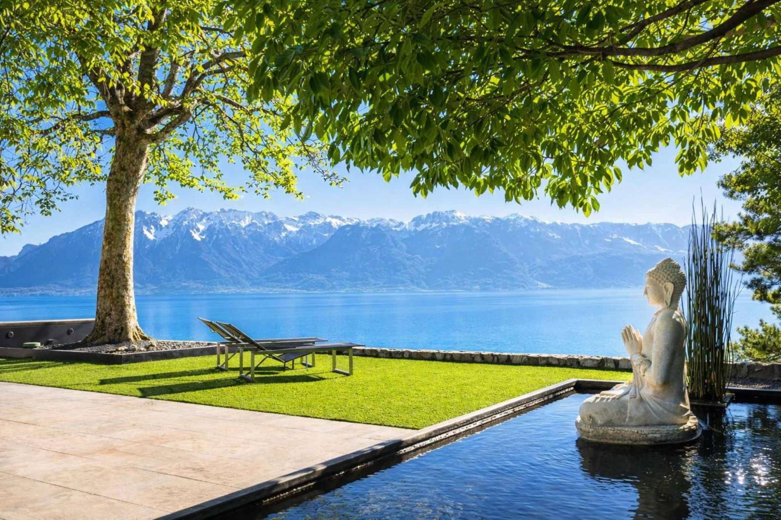 Posizione dominante, nessun disturbo, nessuna vista esterna, nessuna possibilità di future costruzioni: la vista sul Lago di Ginevra e sulle Alpi è protetta in modo permanente.