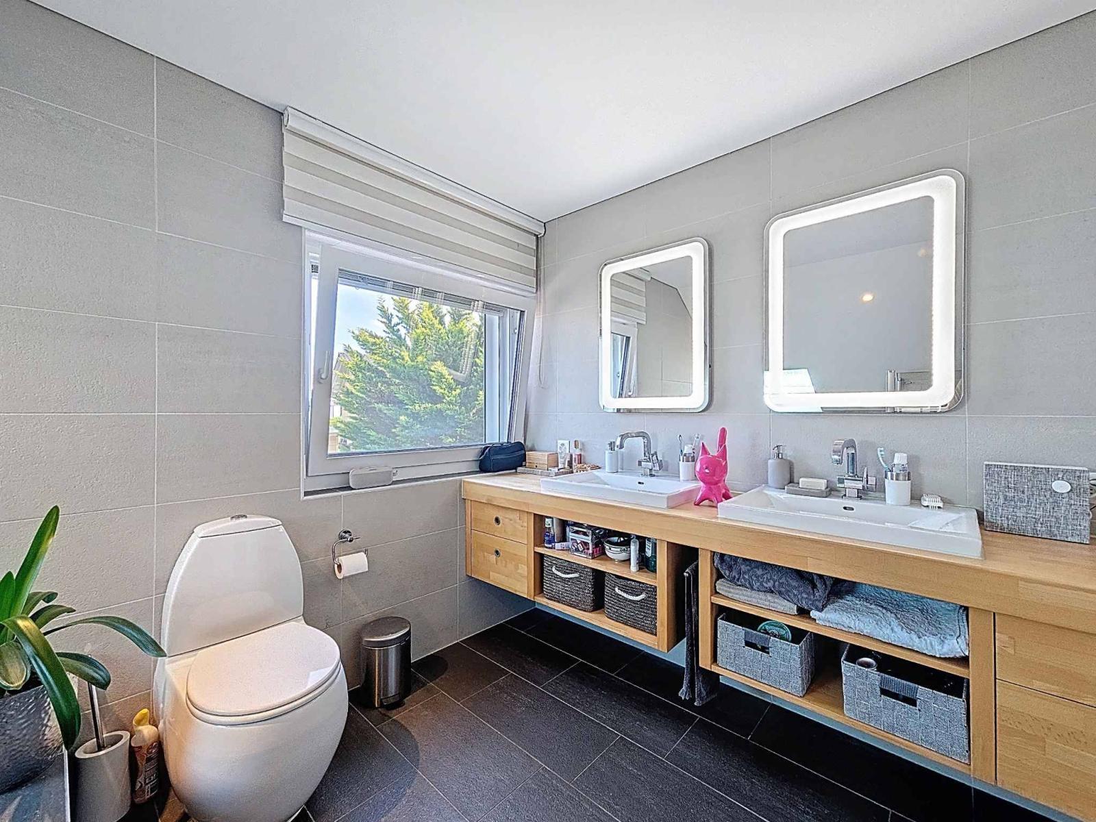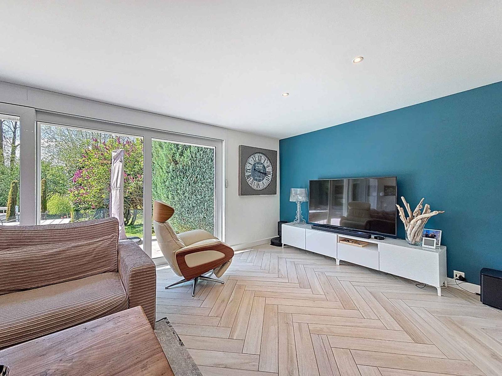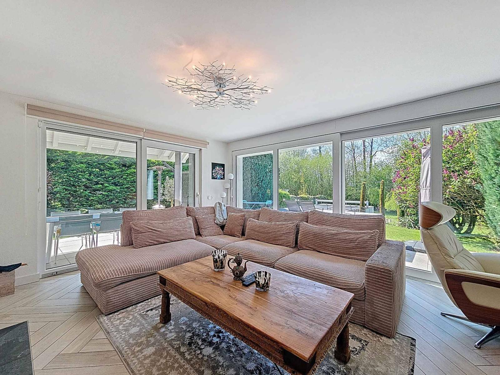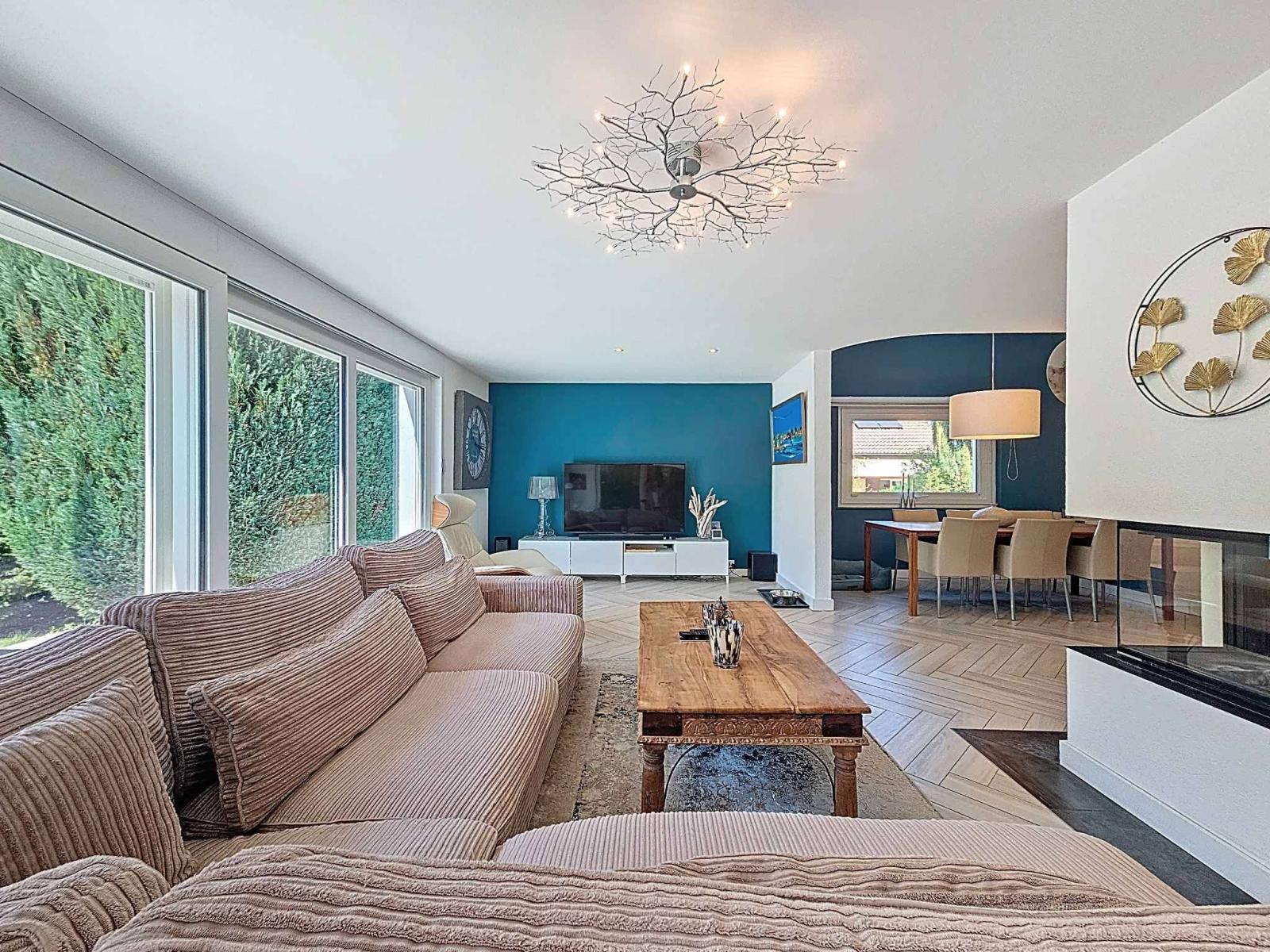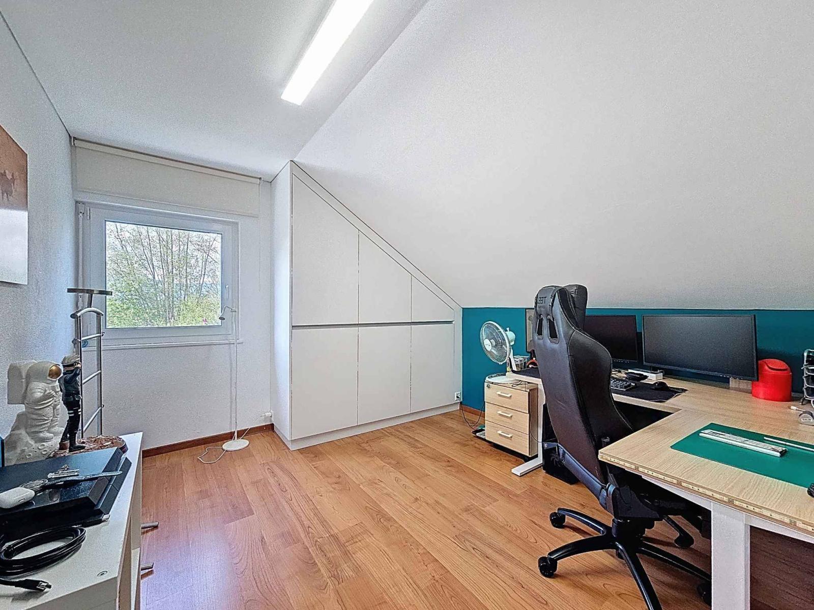 Magnifica villa indipendente di 5,5 locali, costruita nel 1989 e meticolosamente ristrutturata nel 2007 e nuovamente nel 2022, situata in una tranquilla e ambita zona residenziale. Con circa 156 m² di superficie abitabile (240 m² di superficie totale) e un volume di 1.183 m³, questa proprietà colpisce per i materiali di alta qualità e lo stile contemporaneo. La casa si sviluppa su due livelli con un seminterrato completamente rifinito che comprende una sala cinema, una palestra, una cantina, oltre a locali di servizio e ripostigli.