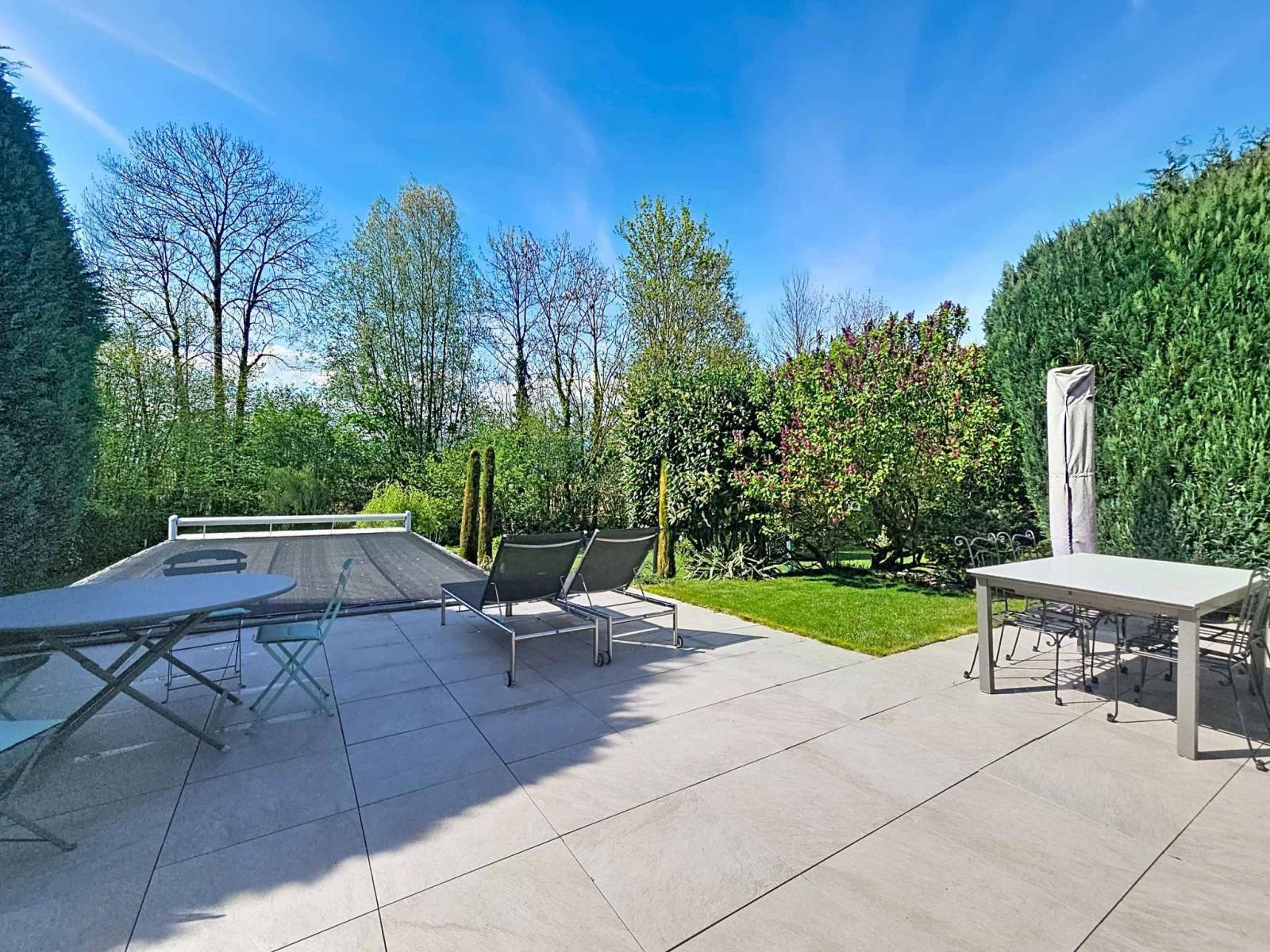 All'esterno, potrete godere di un magnifico giardino, curato nei minimi dettagli, con alberi secolari, un ruscello che attraversa la proprietà e una piscina in cemento (7,6 x 4 x 1,6 m) riscaldata da una pompa di calore e protetta da una copertura di sicurezza. La manutenzione del prato è semplificata grazie a un robot tagliaerba, affettuosamente chiamato Oscar, per la massima comodità quotidiana. Il comfort è ulteriormente migliorato grazie a recenti interventi di ammodernamento come i tripli vetri (2015), l'isolamento perimetrale e i pannelli fotovoltaici.
