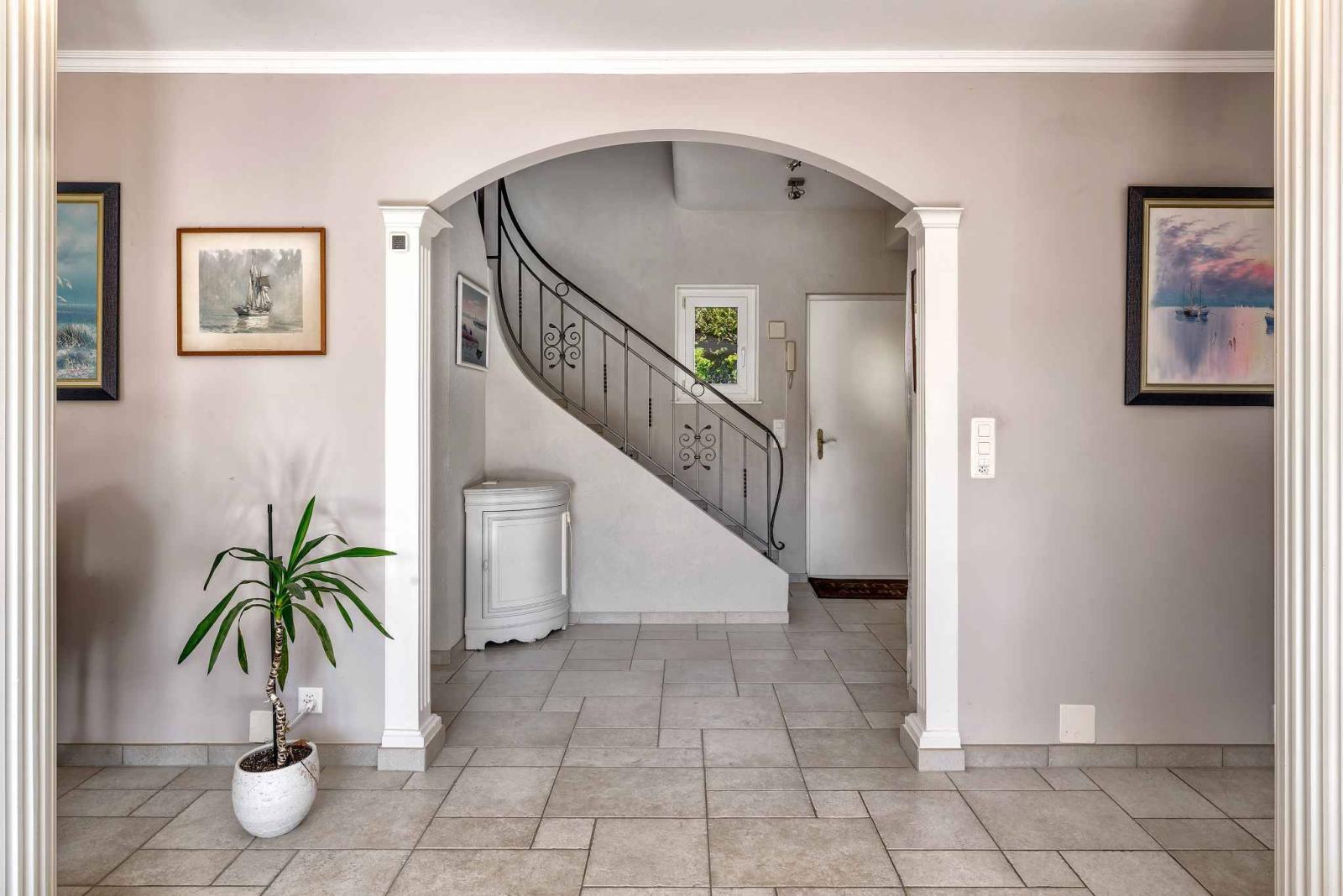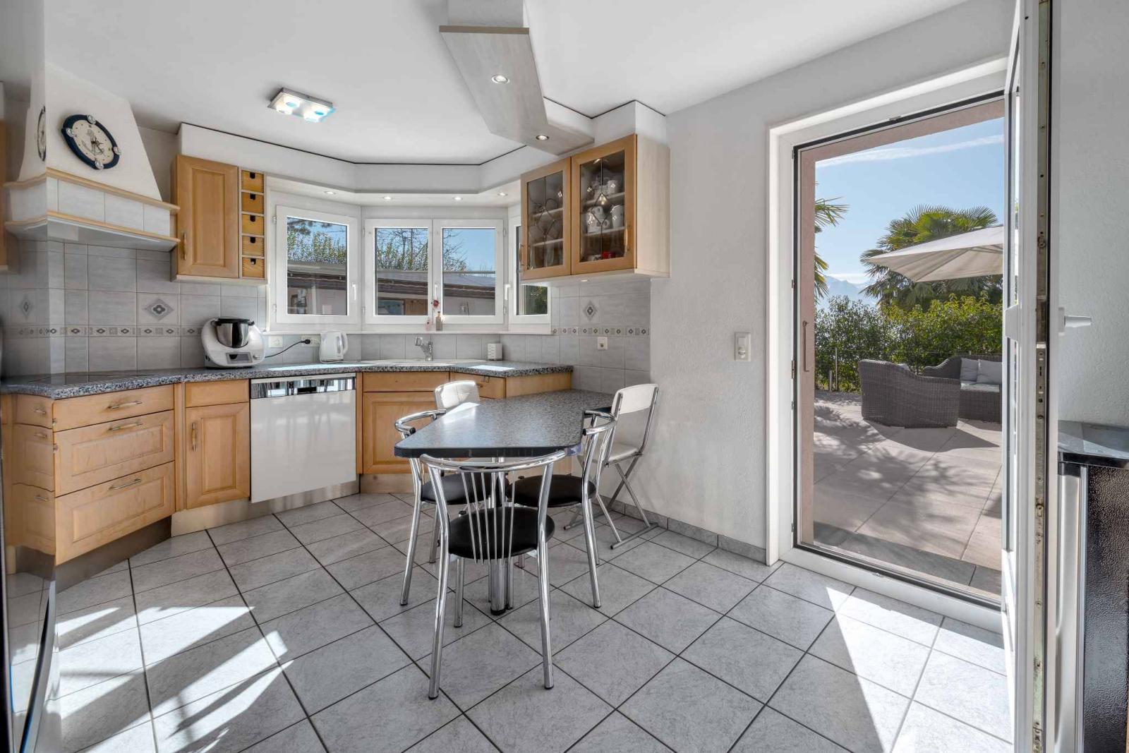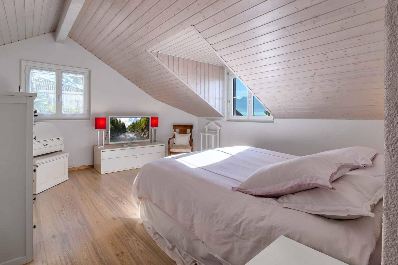 Con circa 230 m² di superficie abitabile e circa 300 m² di superficie totale, questa residenza si distingue per le sue generose proporzioni e l'eccezionale luminosità naturale. Il piano terra presenta un ampio soggiorno con colonnati e camino, che si apre su una grande terrazza esposta a sud, offrendo splendide viste sulle montagne e scorci sul lago.