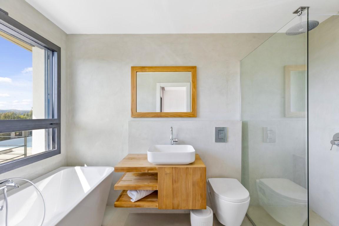 Elle se compose d’un espace de vie lumineux comprenant séjour, salle à manger et cuisine ouverte avec îlot central, tous ouverts sur une large terrasse partiellement couverte avec cuisine d’été.