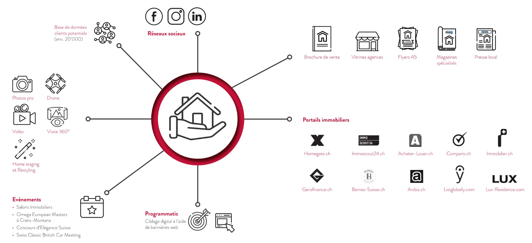 Vi viene proposto un accompagnamento su misura per garantirvi una visibilità ottimale grazie all’utilizzo degli strumenti di comunicazione attuali. Gli strumenti di marketing – che spaziano da quelli tradizionali ai supporti pubblicitari fino alle nuove tecnologie digitali – vi saranno proposti in linea con il vostro progetto. Inoltre, verrà realizzata un’analisi di mercato per individuare le tendenze e le esigenze in termini di visibilità. Infine, i nostri esperti elaboreranno una strategia commerciale personalizzata.