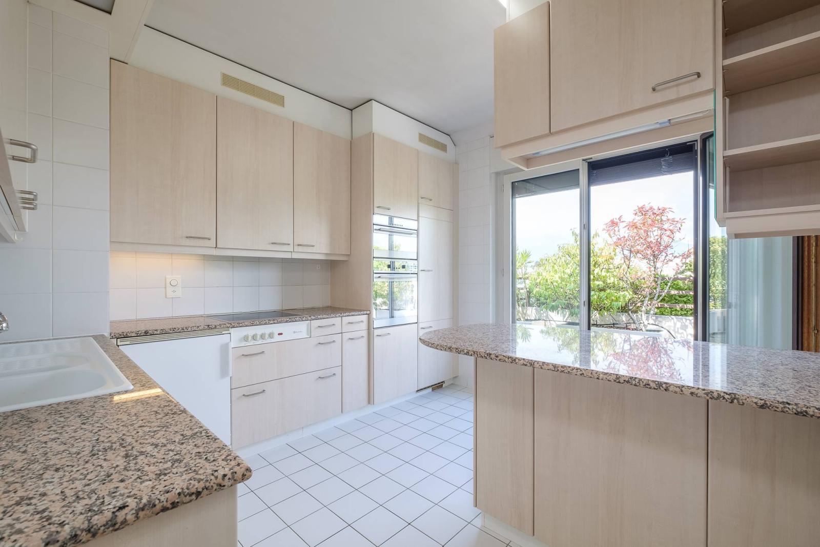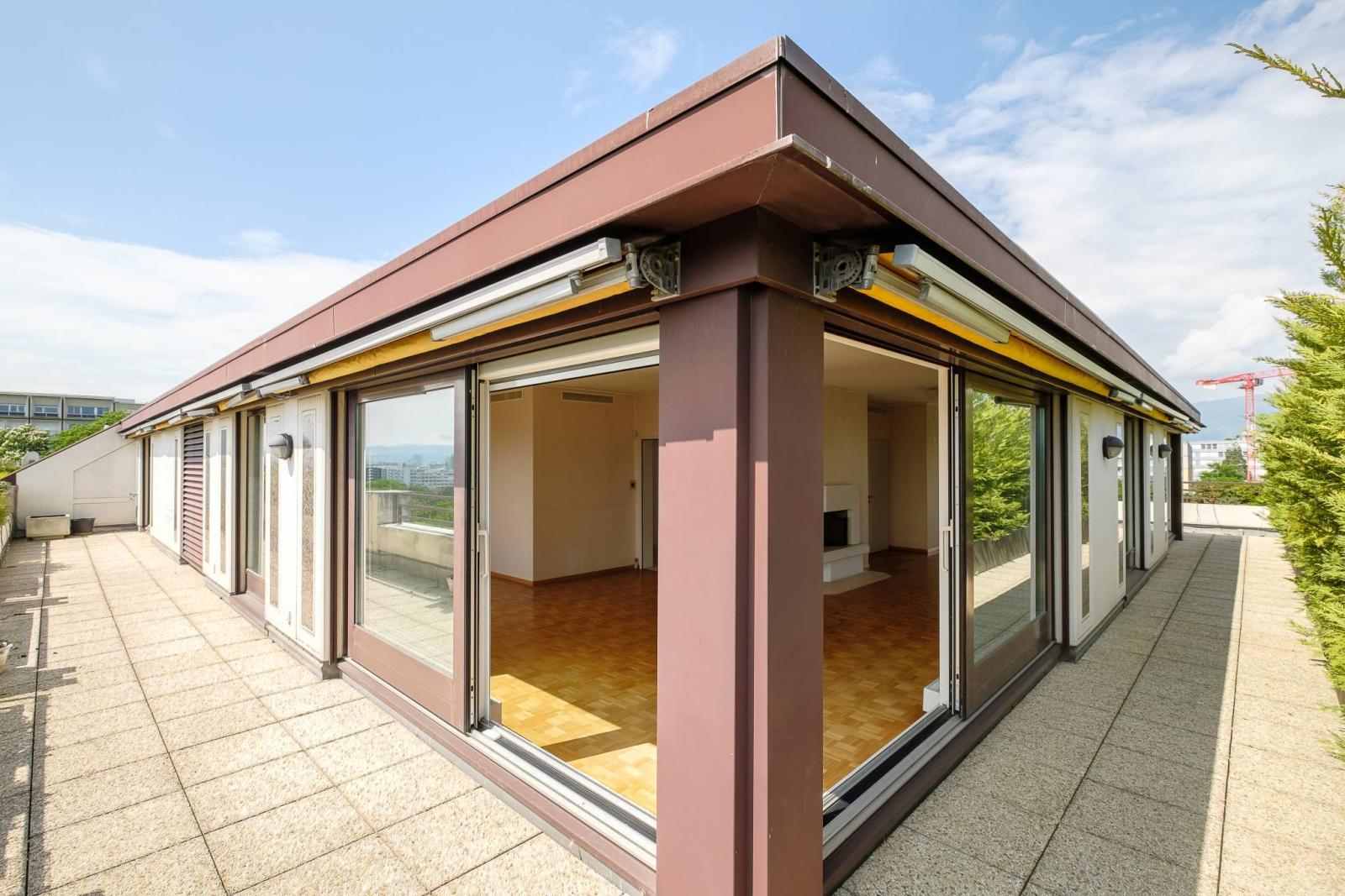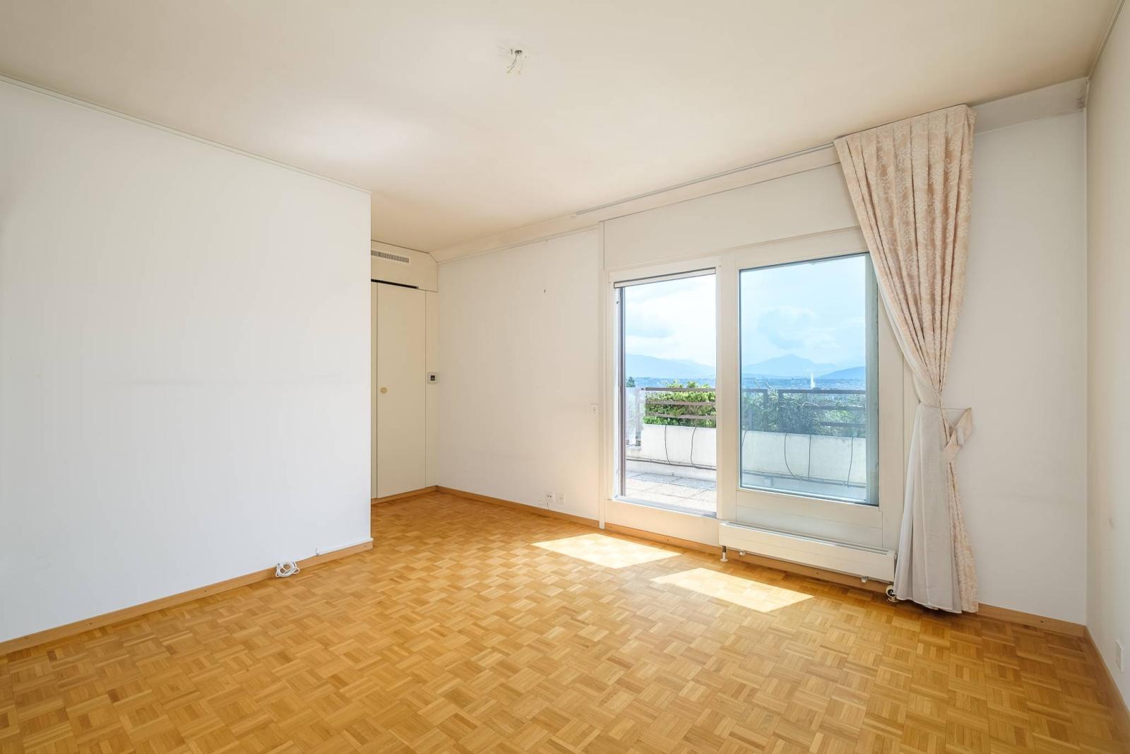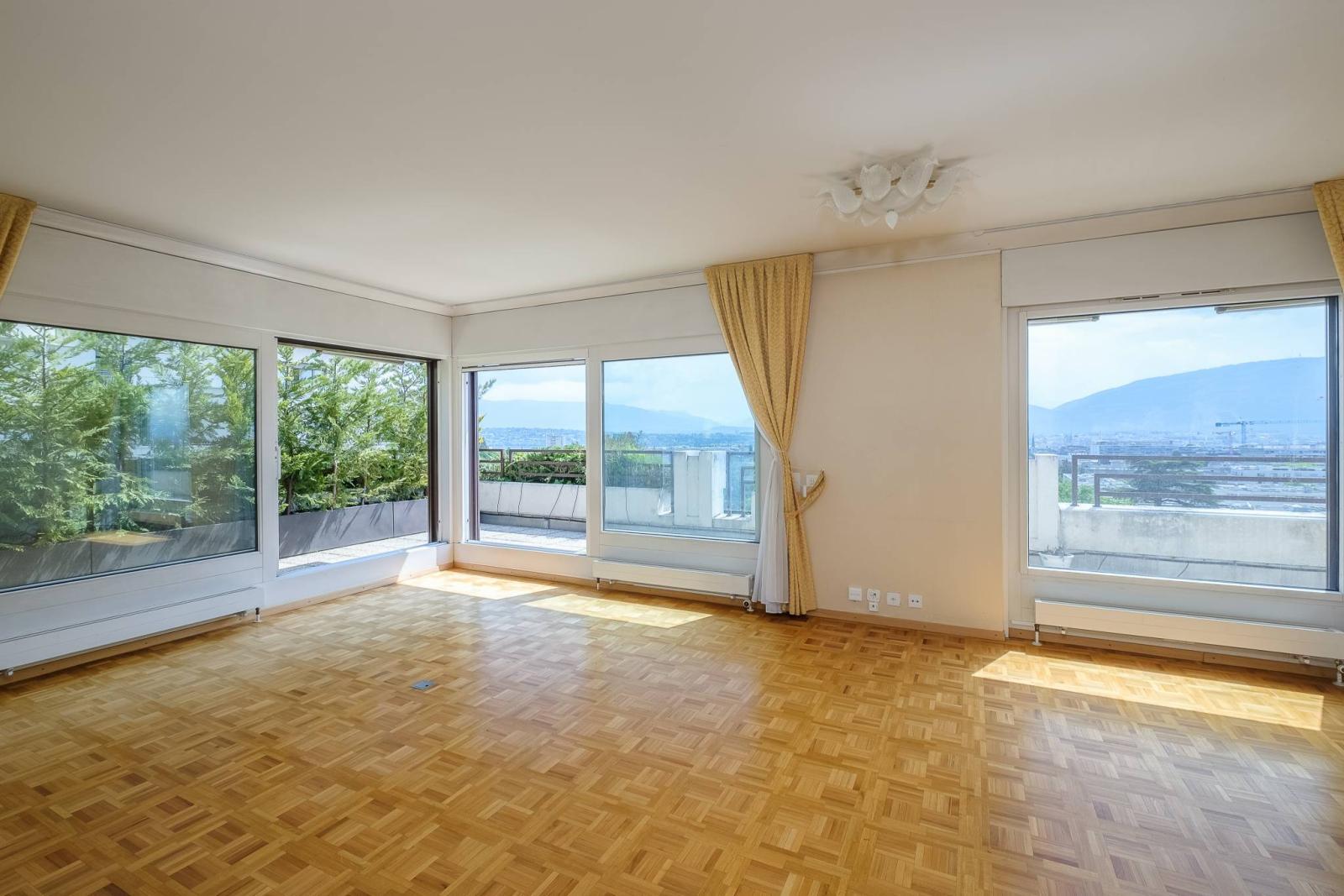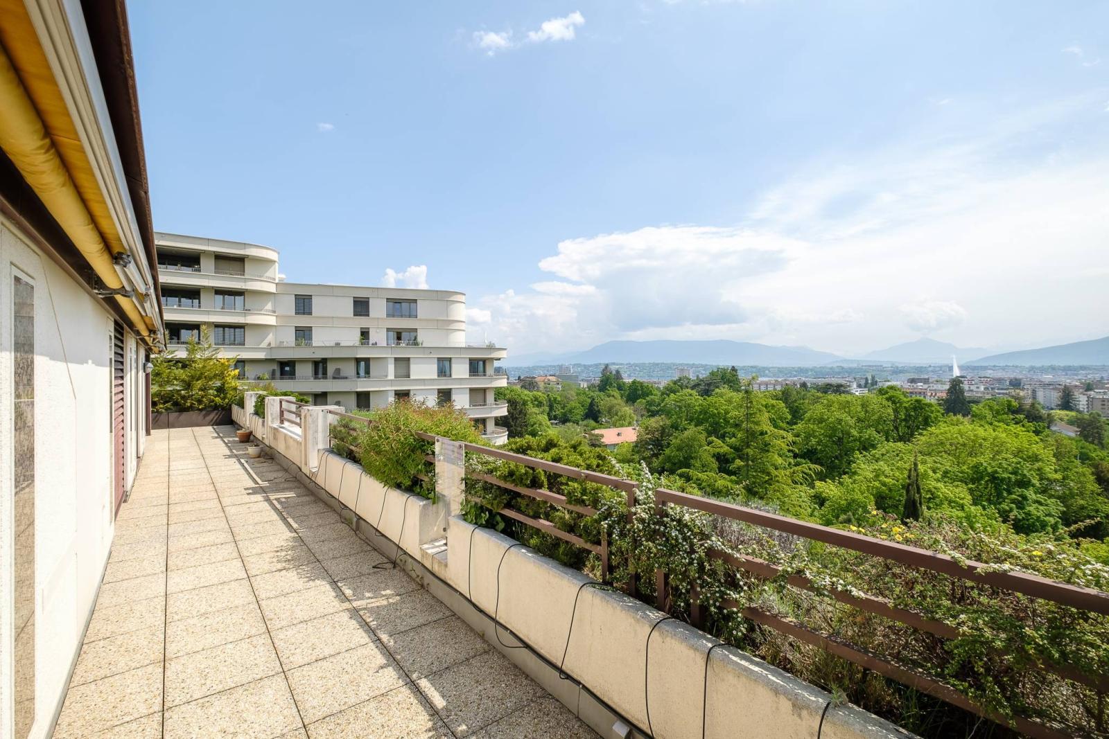 Luminoso e con tetto a capanna, l'appartamento gode di una vista panoramica e mozzafiato sulla città, sulle Alpi e sul Jet d'eau.