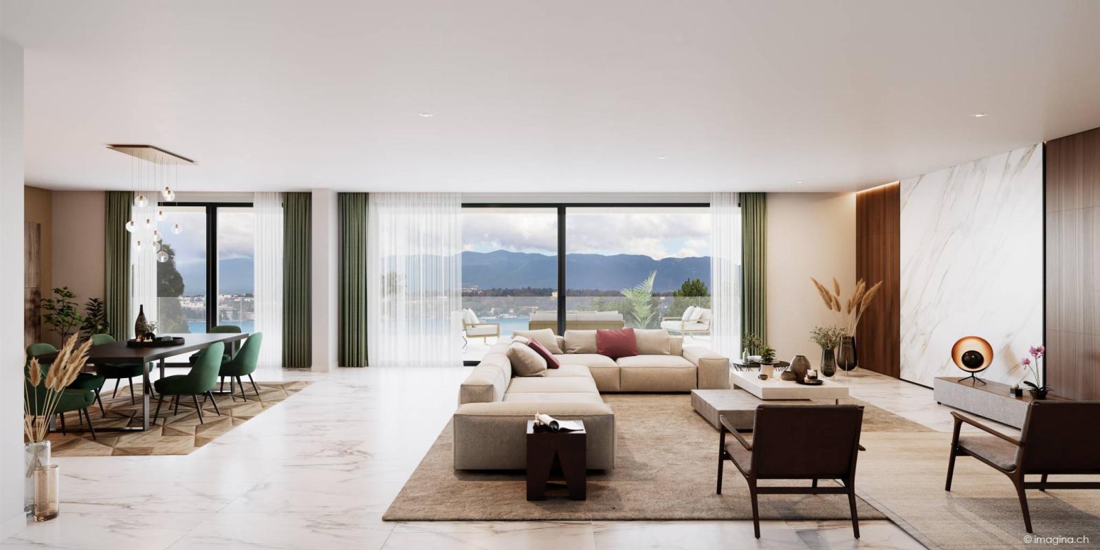 Una spettacolare e mozzafiato vista a 180° sul lago, sul Giura e sul parco dona alla residenza uno scenario raro ed unico.