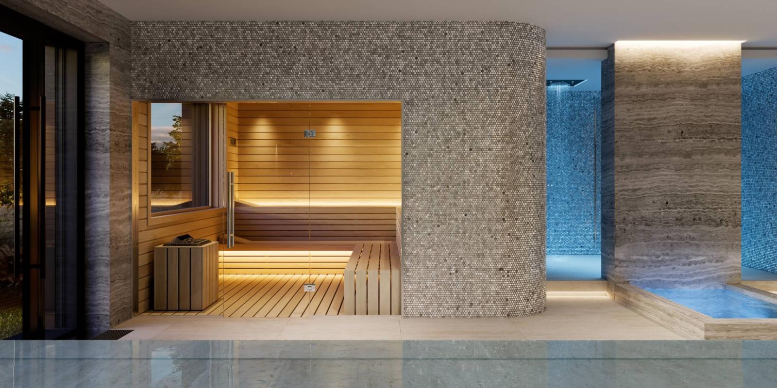Il piano inferiore di circa 125 mq offre un'area benessere privata con sauna e una cantina climatizzata. Questo piano comprende anche una zona lavanderia e ripostiglio.