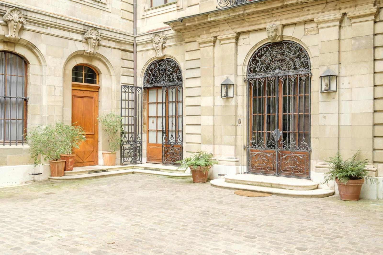Situato in una delle strade più prestigiose del centro storico, questo appartamento duplex di 8 locali si trova in un palazzo privato risalente al XVIII secolo che vanta un maestoso cortile interno e un ambiente unico.