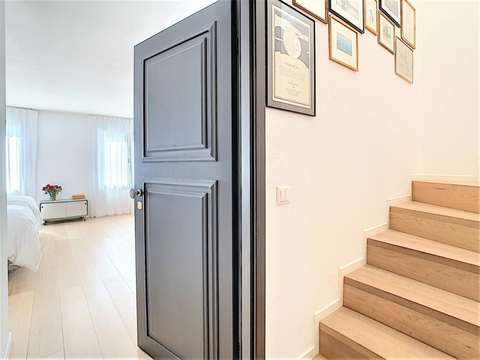 La zona notte è composta da un'ampia camera da letto, un bagno con vasca, WC e cabina doccia, una seconda camera da letto, uno studio oltre ad una zona lavanderia che potrebbe essere trasformata in un bagno con doccia. Va notato che, in pianta, questo livello aveva 3 o anche 4 camere da letto, motivo per cui, sul foglio di distribuzione, questo appartamento conta come un appartamento di 6 stanze.