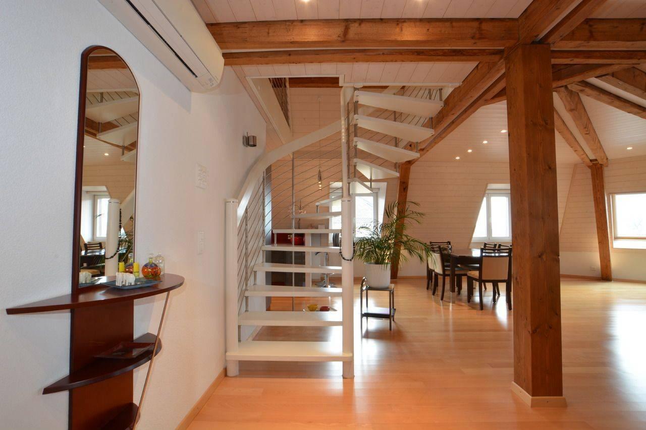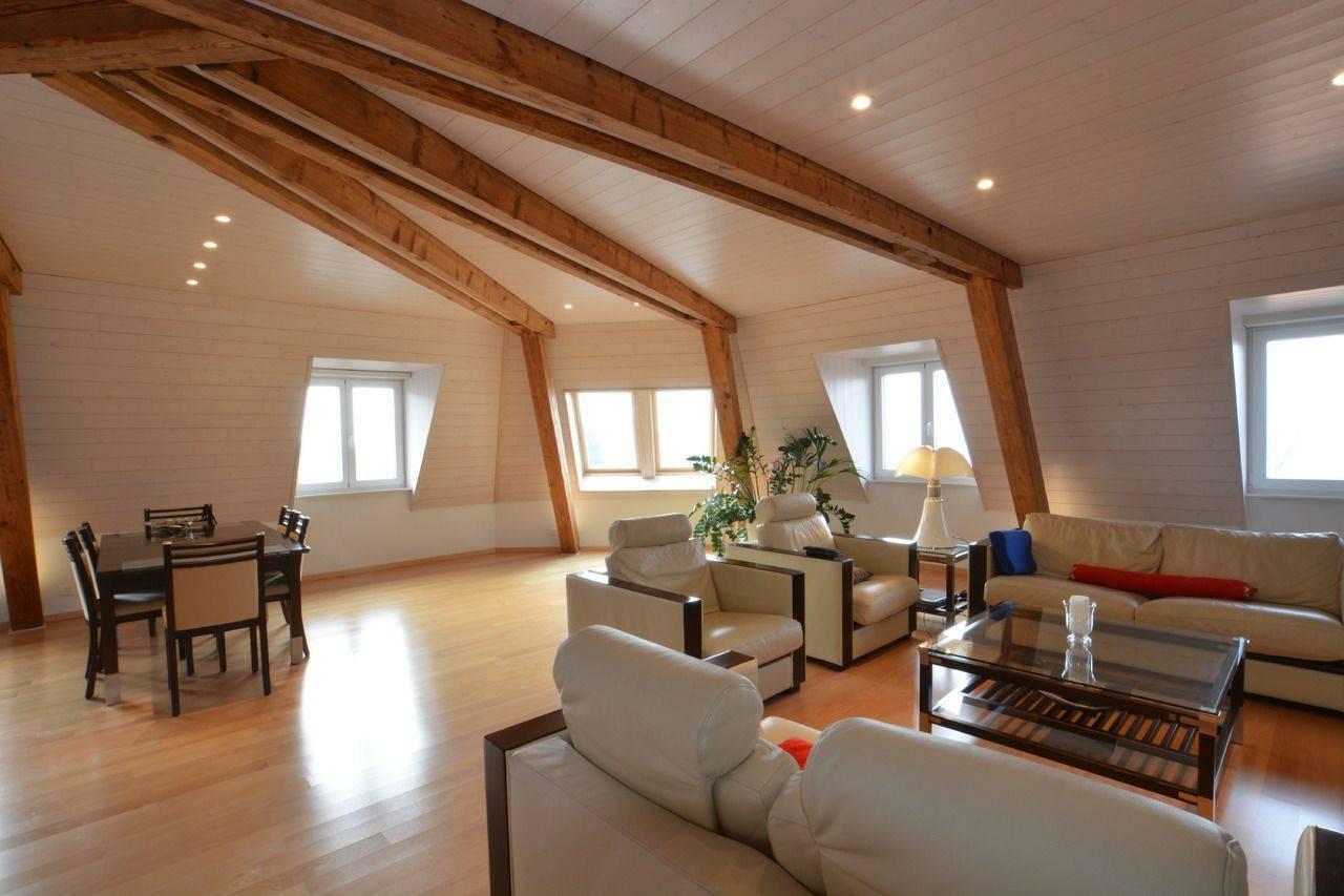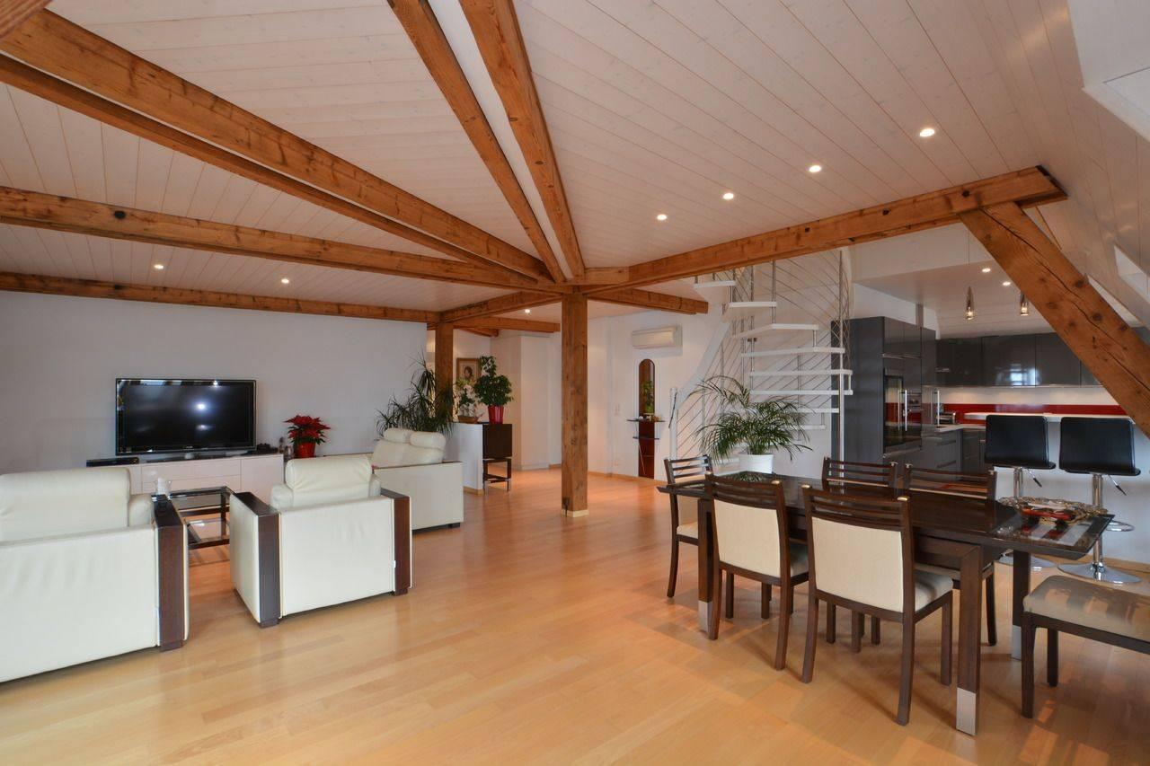 Vicino a Nestlé, a due passi dal centro della città di Vevey e da tutti i suoi servizi, in una zona tranquilla, magnifico duplex di 6,5 locali di circa 165 m², che offre una bellissima vista sul lago.