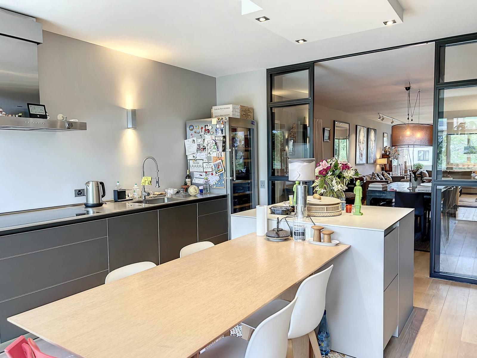 La zona giorno è composta da soggiorno con camino che beneficia di un balcone (13 mq), un'ampia sala da pranzo, una cucina semi-aperta con isola centrale e accesso ad un balcone. Un ingresso separato ha una dispensa, due camere da letto e un bagno con doccia e WC.